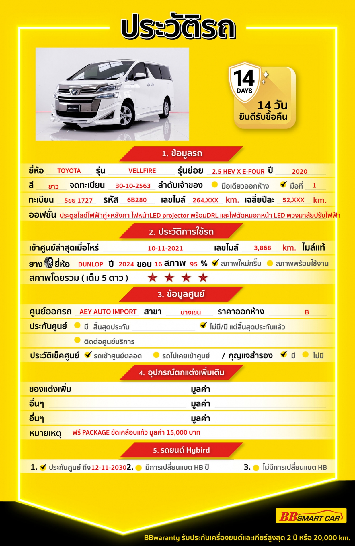 Car Hightlight รถสวยๆ วันนี้ขอแนะนำ TOYOTA VELLFIRE 2.5 HEV X E-FOUR AT 2020