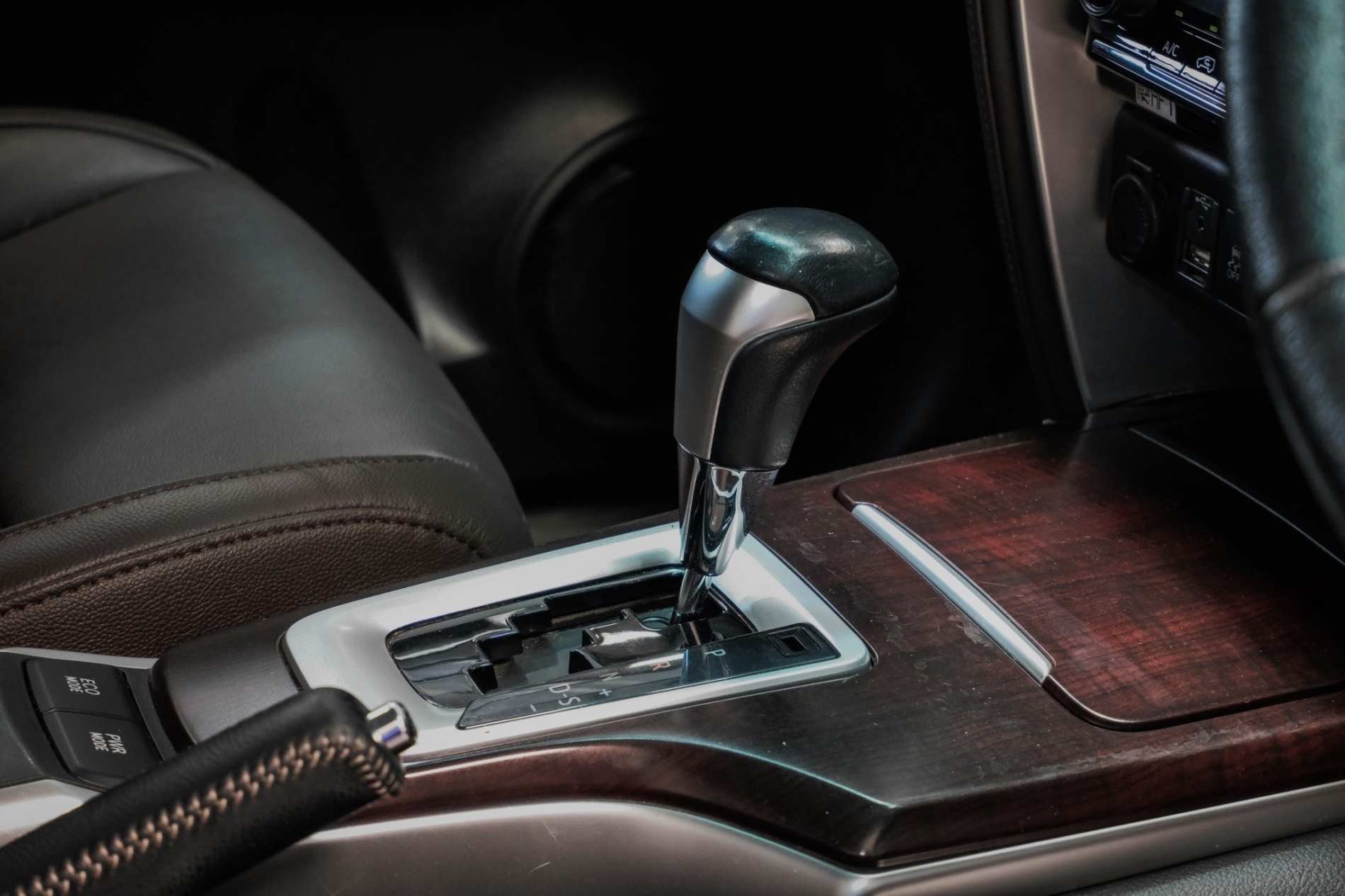 ✅ หัวเกียร์หุ้มหนัง พร้อมแถบสีเงิน ฐานเกียร์ตกแต่งลายไม้ / แถบสีเงิน