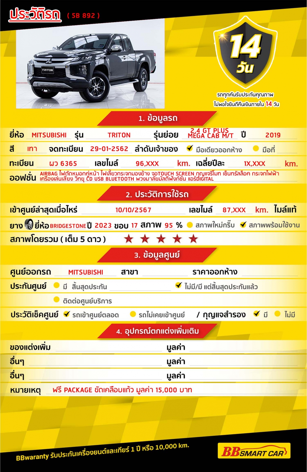 Model. : TRITON Grade. : 2.4 GT PLUS MEGA CAB