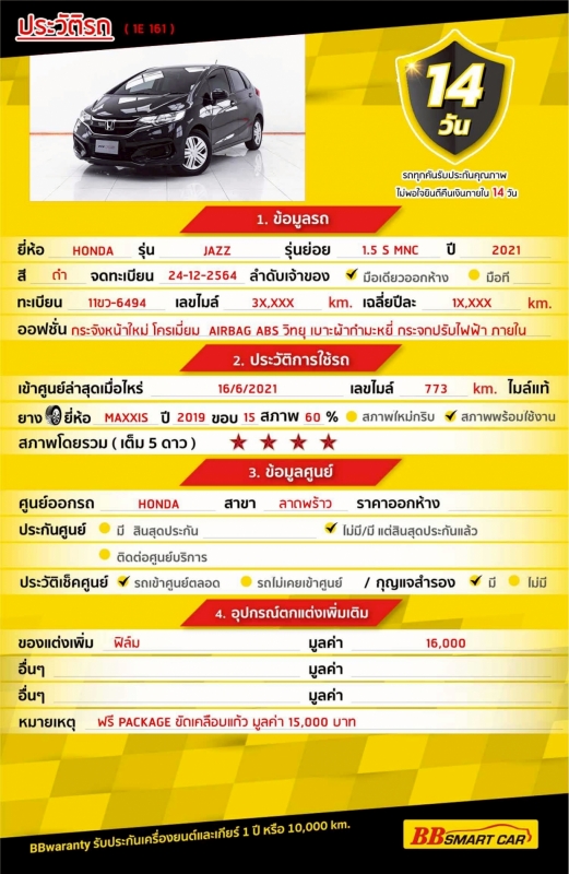- BB Care Plus รับประกันหลังการขาย สูงสุด 2 ปี หรือ 20,000 km.