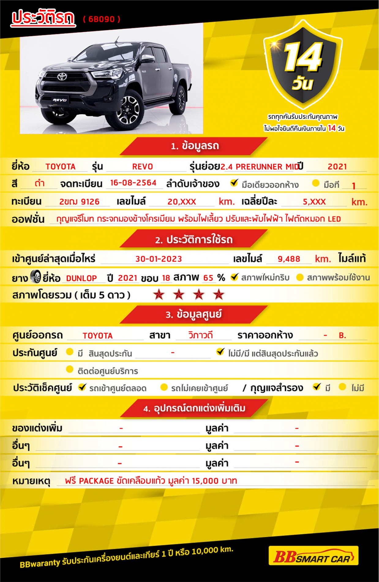 Model. : HILUX REVO Grade. : DOUBLECAB 2.4 PRERUNNER MID