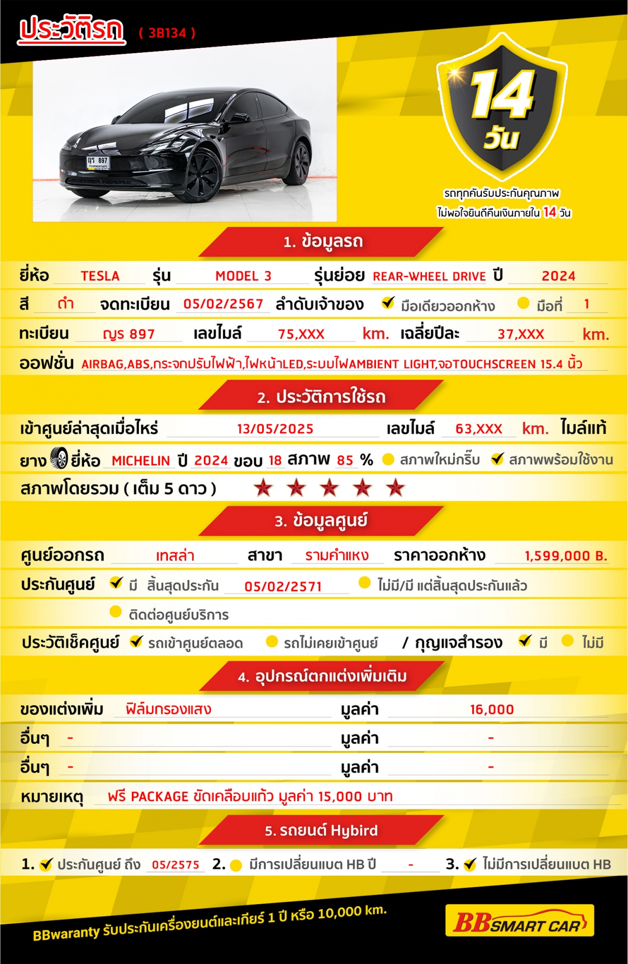- BB Care Plus รับประกันหลังการขาย สูงสุด 2 ปี หรือ 20,000 km.