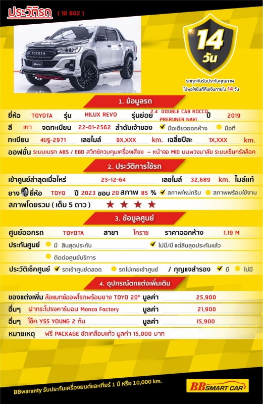 - BB Care Plus รับประกันหลังการขาย สูงสุด 2 ปี หรือ 20,000 km.