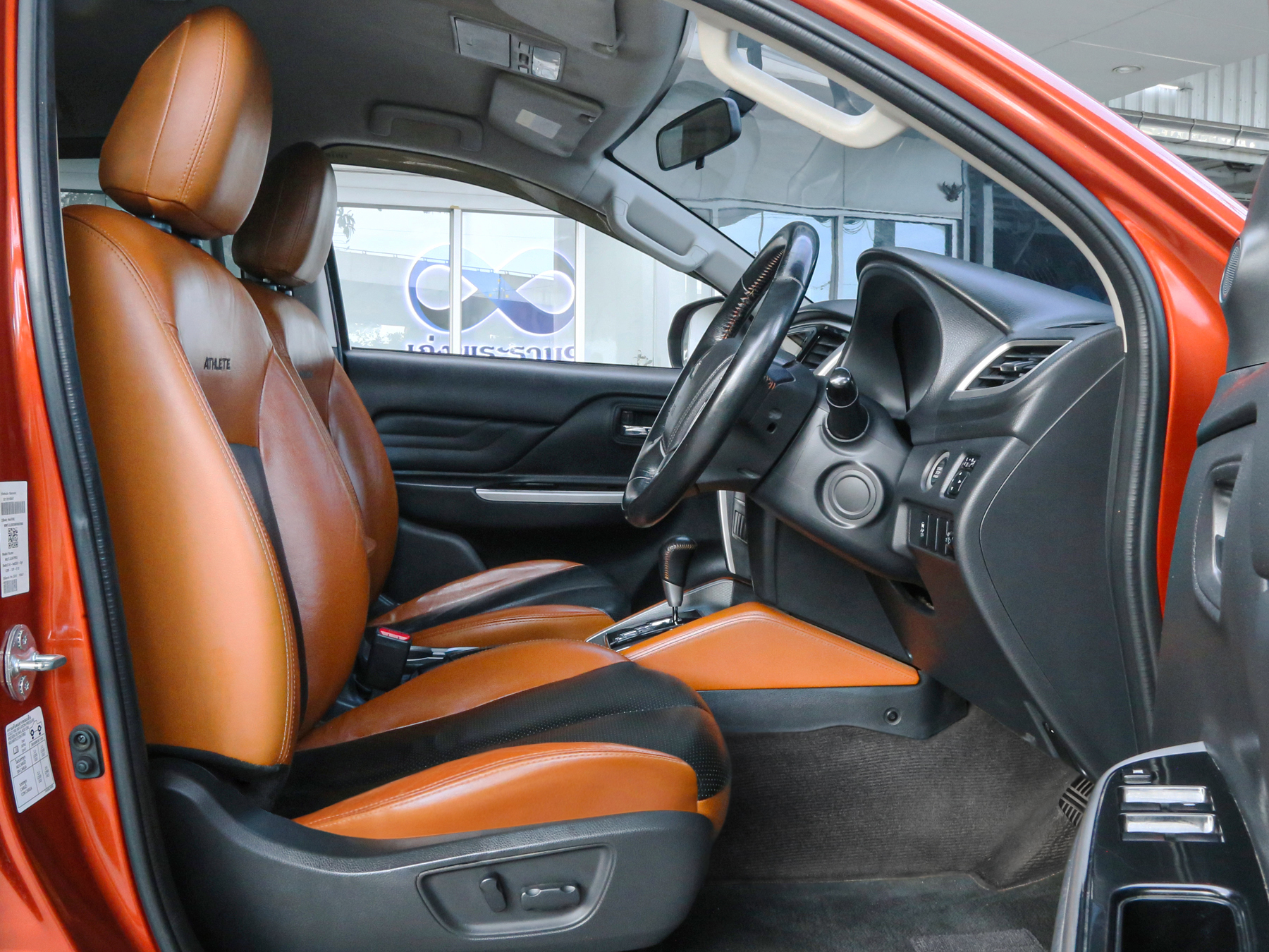 ✅ เบาะนั่งหุ้มด้วยหนัง สีดำ สลับสีส้ม พร้อมสัญลักษณ์ ATHLETE