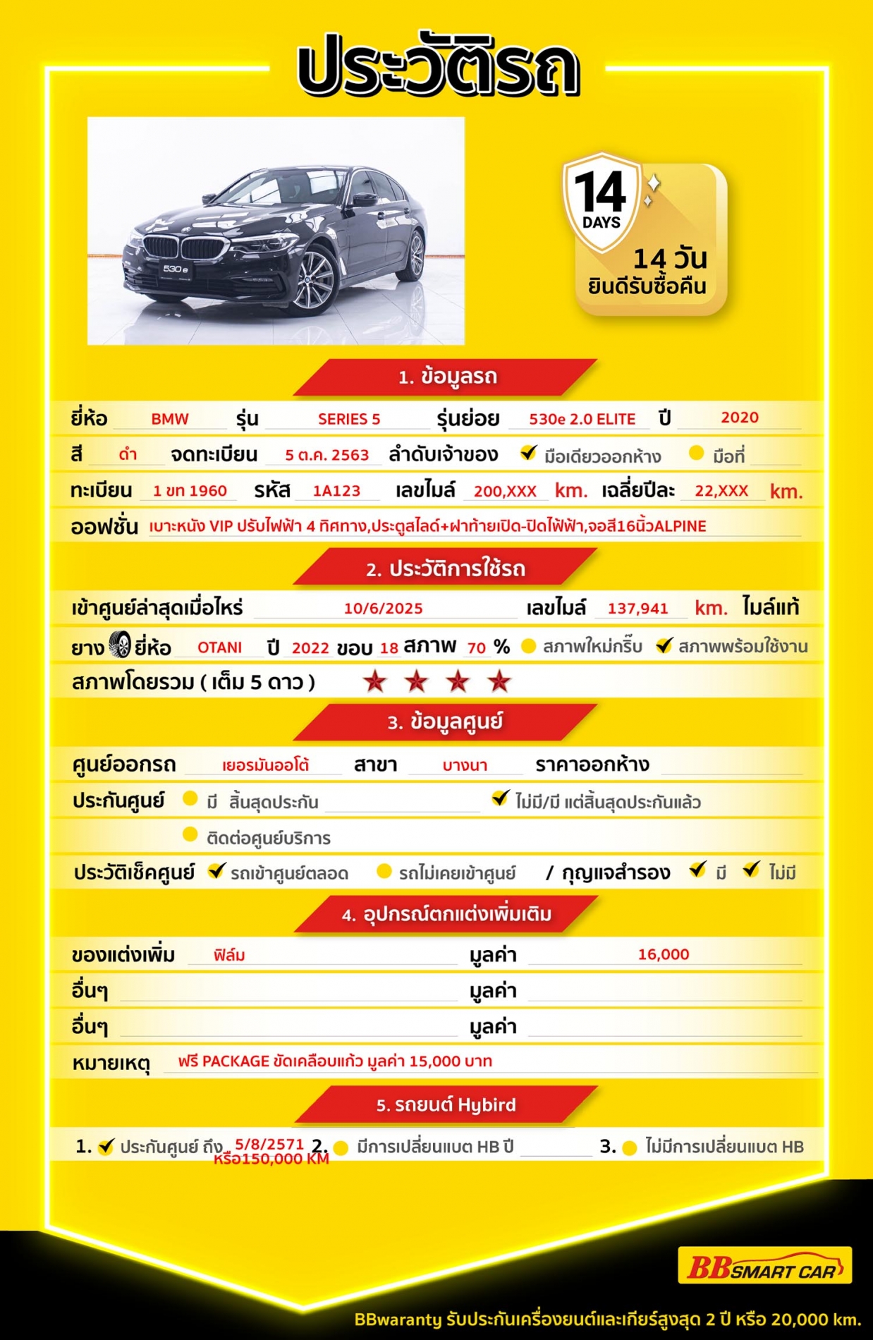 - BB Care Plus รับประกันหลังการขาย สูงสุด 2 ปี หรือ 20,000 km.