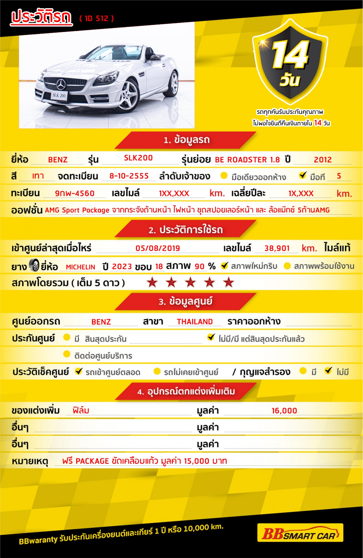 Model. : SLK-CLASS Grade. : SLK200 BE ROADSTER 1.8