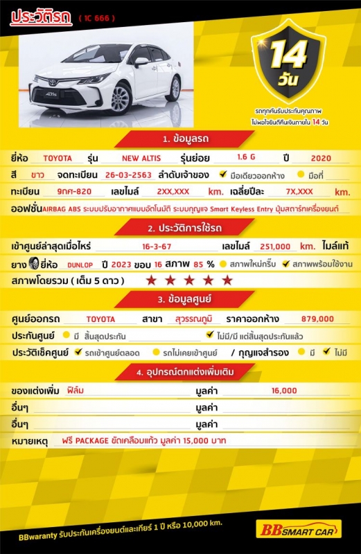 - BB Care Plus รับประกันหลังการขาย สูงสุด 2 ปี หรือ 20,000 km.