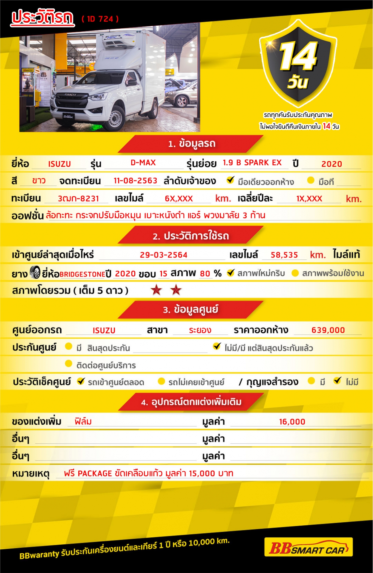 - BB Care Plus รับประกันหลังการขาย สูงสุด 2 ปี หรือ 20,000 km.