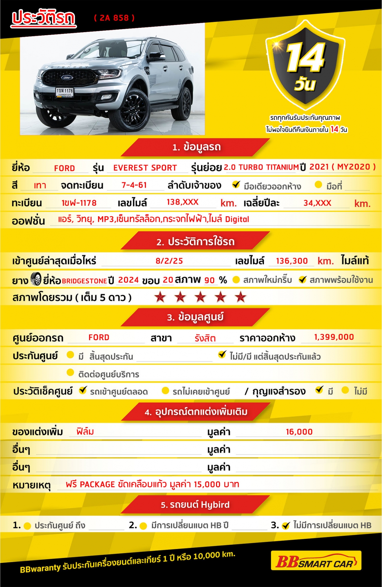 FORD EVEREST 2.0 TURBO TREND AT 2021 ออกรถ 0 บาท จัดได้ 659,000 บ Line : @bbcar02