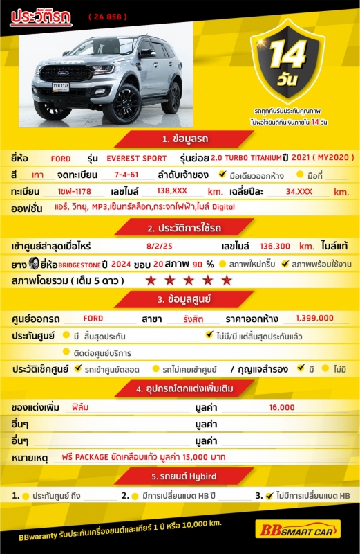 BB Care Plus รับประกันหลังการขาย สูงสุด 2 ปี หรือ 20,000km.