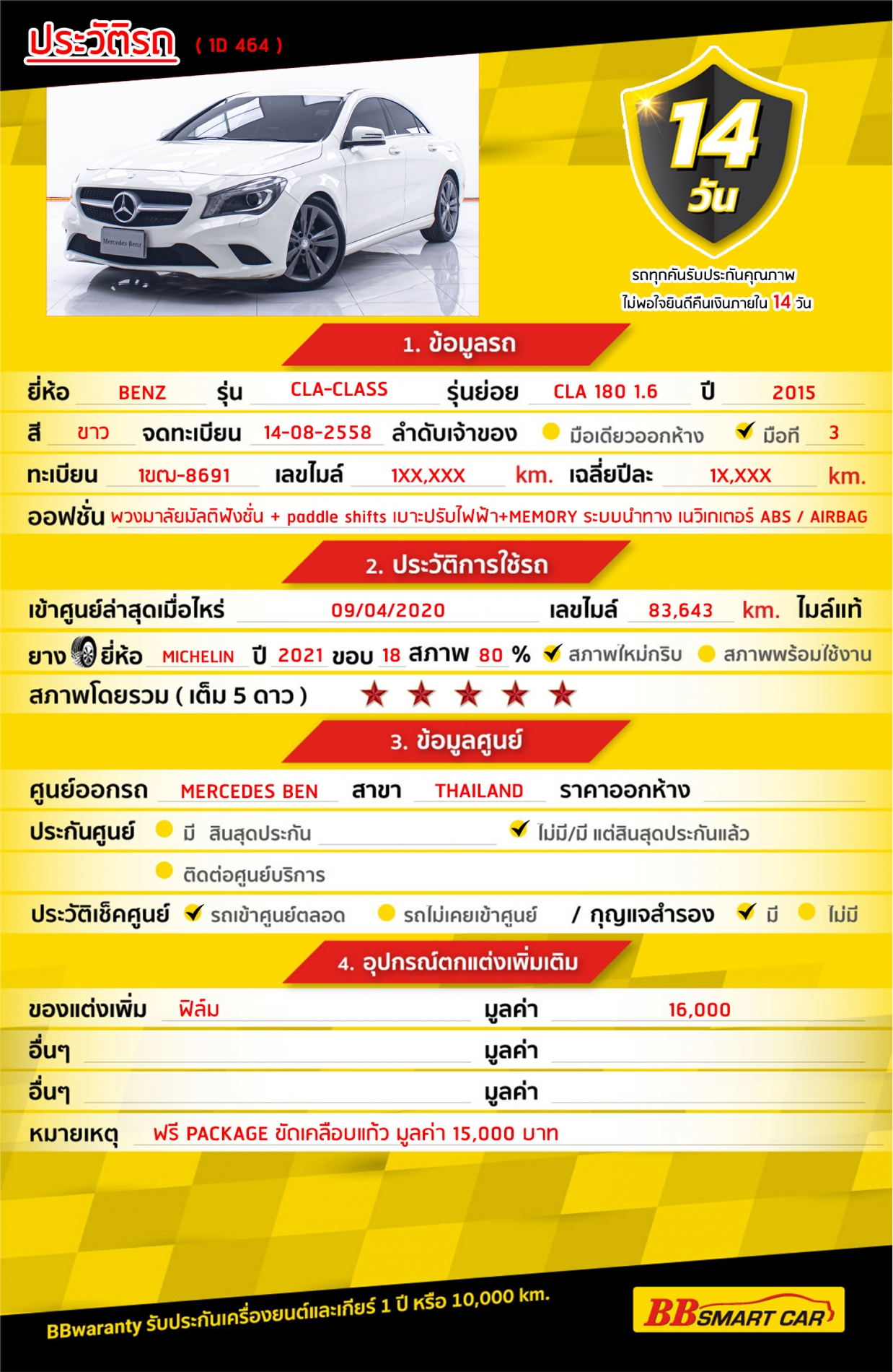 BENZ CLA-CLASS 180 1.6 AT 2015