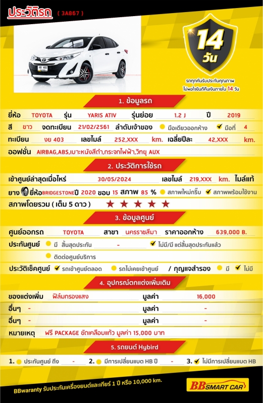 - การรับประกันหลังการขาย BBwarranty ดูแลเครื่องยนต์และเกียร์ นาน 2 ปี หรือ 20,000 กิโลเมตร ด้วยช่างที่ผ่านการอบรมจากศูนย์ชั้นนำของประเทศ