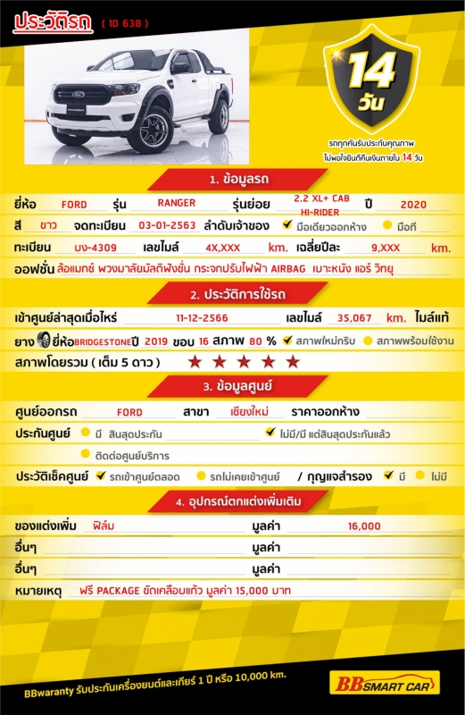 - BB Care Plus รับประกันหลังการขาย สูงสุด 2 ปี หรือ 20,000 km.