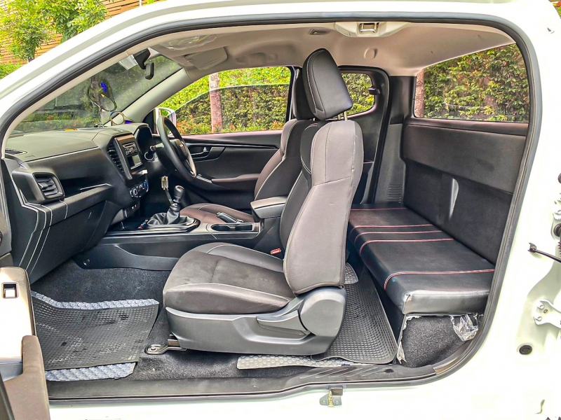 เบาะผ้าเดิมจากโรงงาน ด้านท้ายเบาะนั่งหุ้มหนังดำตัดแดง