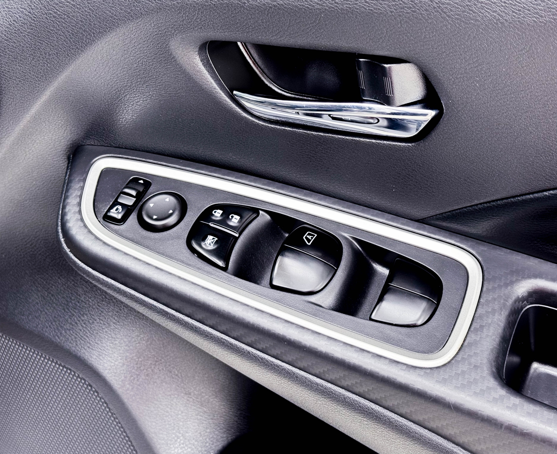 แผงประตูหน้า-หลัง ใช้หนังสังเคราะห์ เดินตะเข็บด้ายสีเทาเข้ม