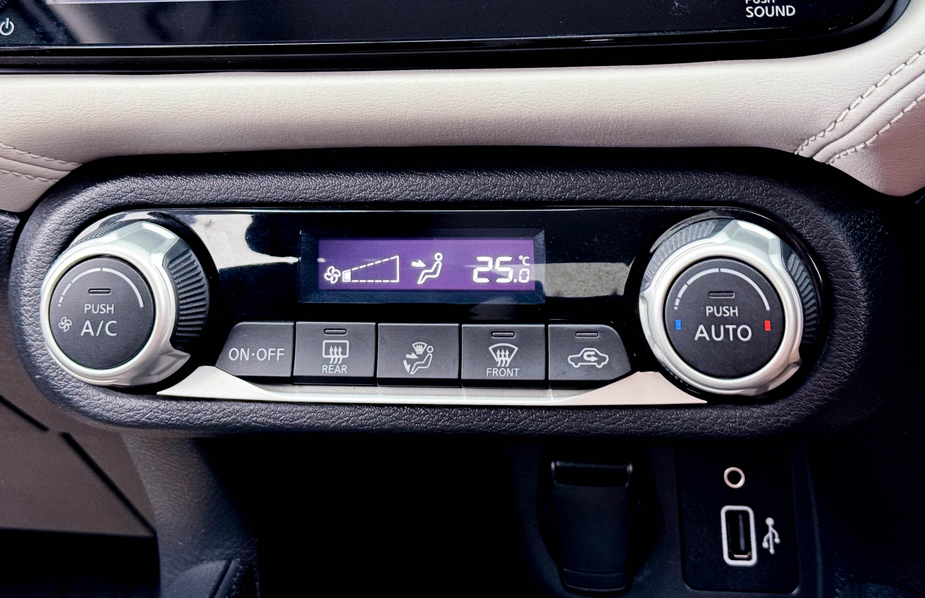คอนโซลหน้า ตกแต่งด้วยวัสดุหนังสังเคราะห์สีดำ เดินตะเข็บด้ายสีเทาเข้ม