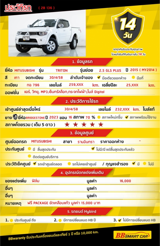 BB Care Plus รับประกันหลังการขาย สูงสุด 2 ปี หรือ 20,000km.