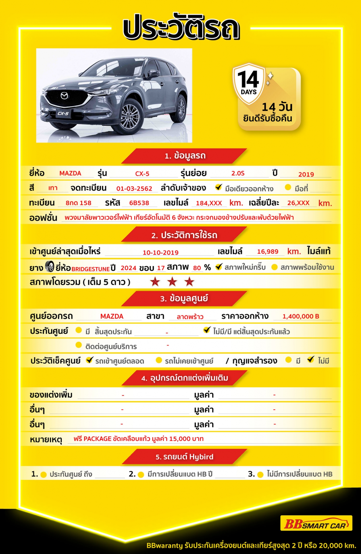 BB Care Plus รับประกันหลังการขาย สูงสุด 2 ปี หรือ 20,000 km.