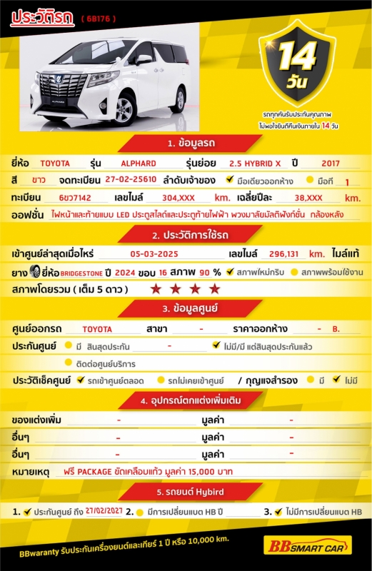 การรับประกันหลังการขาย BB Care Plus สูงสุด 2 ปี หรือ 20,000 km. ด้วยช่างที่ผ่านการอบรมจากศูนย์ชั้นนำของประเทศ