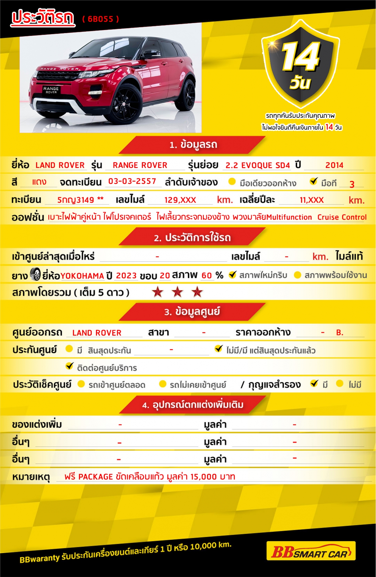 Model. : ROVER RANGE Grade. : 2.2 EVOQUE SD4 4WD