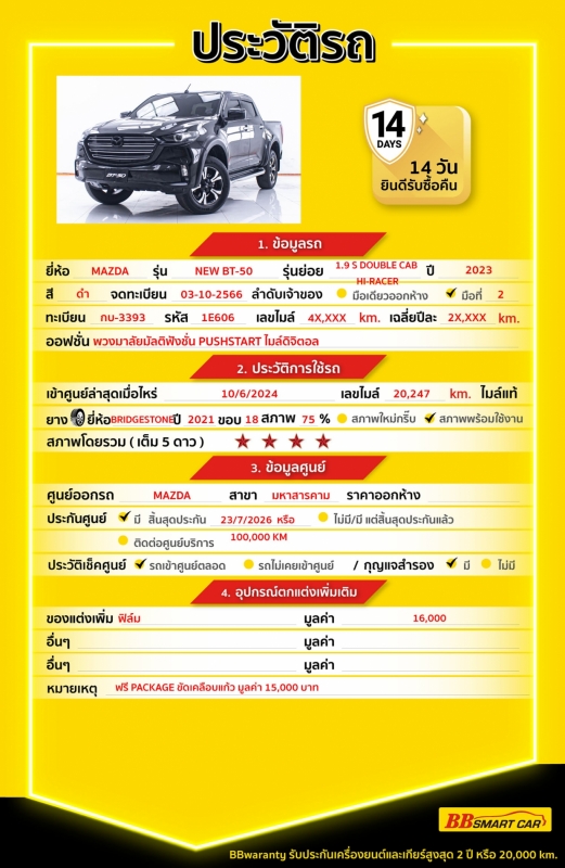 - BB Care Plus รับประกันหลังการขาย สูงสุด 2 ปี หรือ 20,000 km.