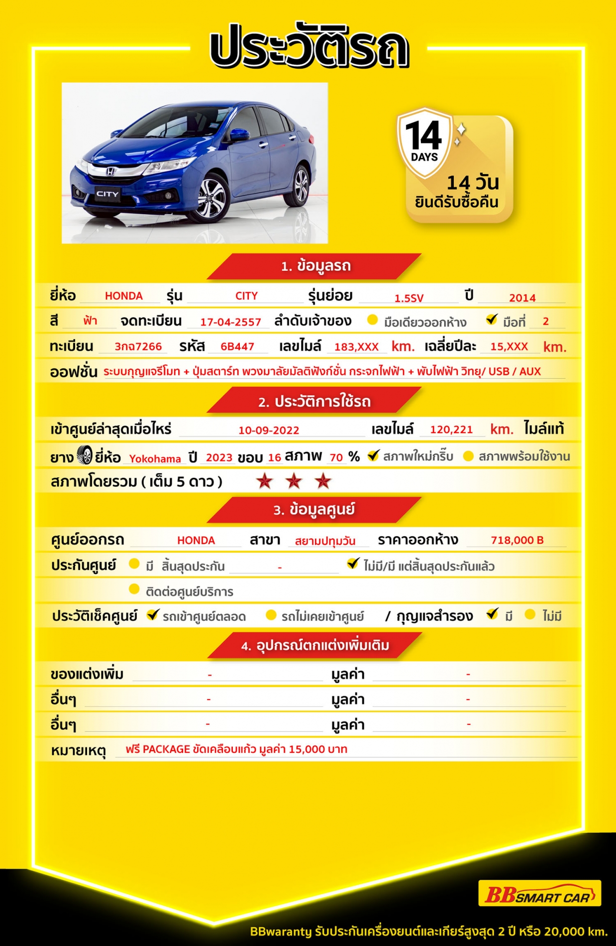 BB Care Plus รับประกันหลังการขาย สูงสุด 2 ปี หรือ 20,000 km..