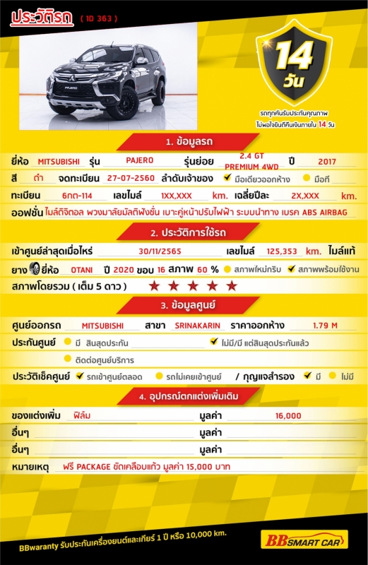 - BB Care Plus รับประกันหลังการขาย สูงสุด 2 ปี หรือ 20,000 km.