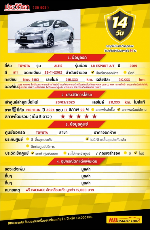 BB Care Plus รับประกันหลังการขาย สูงสุด 2 ปี หรือ 20,000 km.
