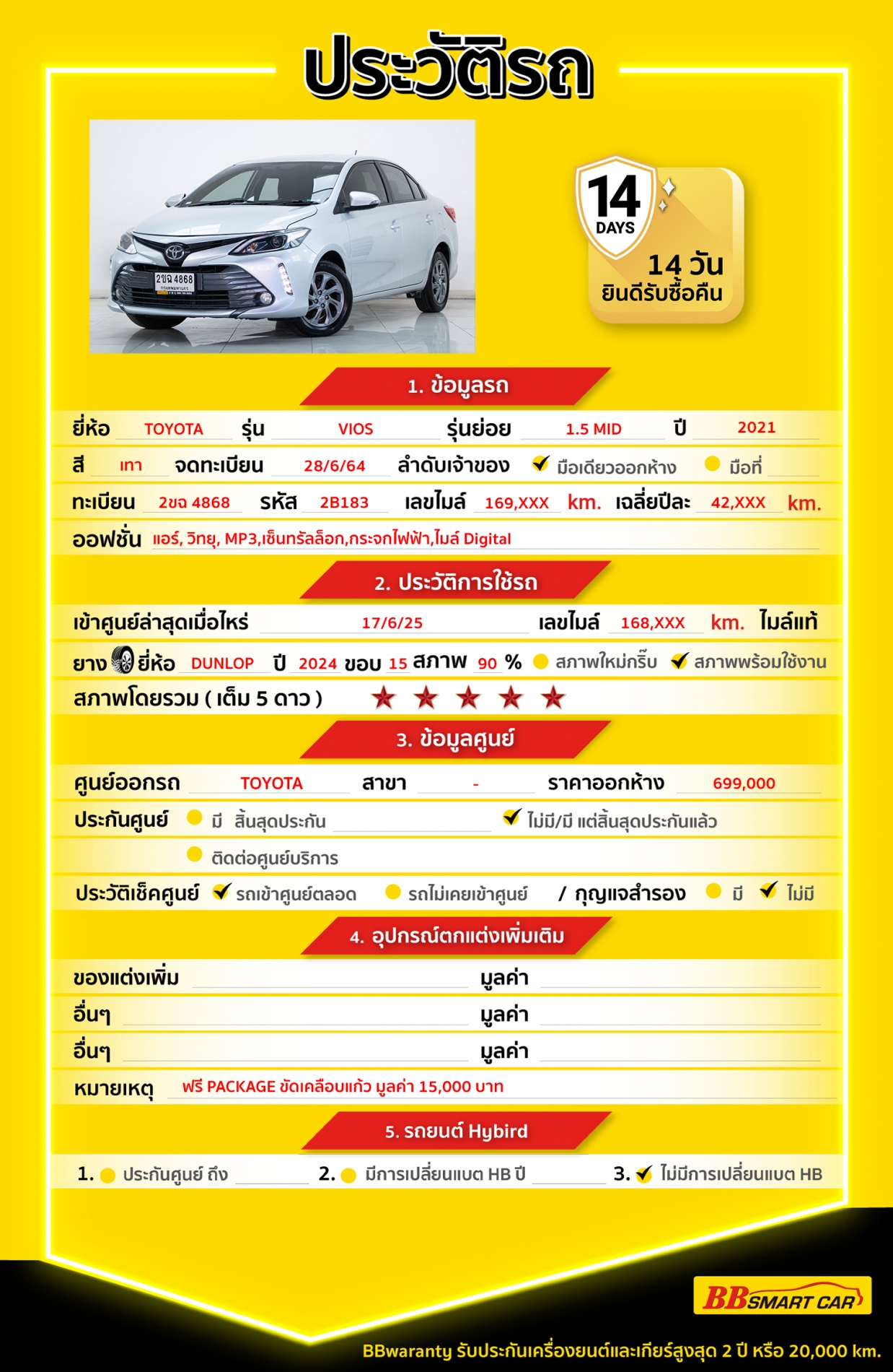 Car Hightlight รถสวยๆ วันนี้ขอแนะนำ TOYOTA VIOS 1.5 MID