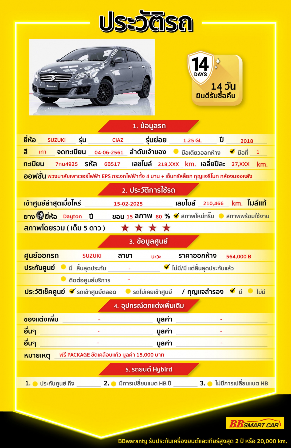 BB Care Plus รับประกันหลังการขาย สูงสุด 2 ปี หรือ 20,000 km.