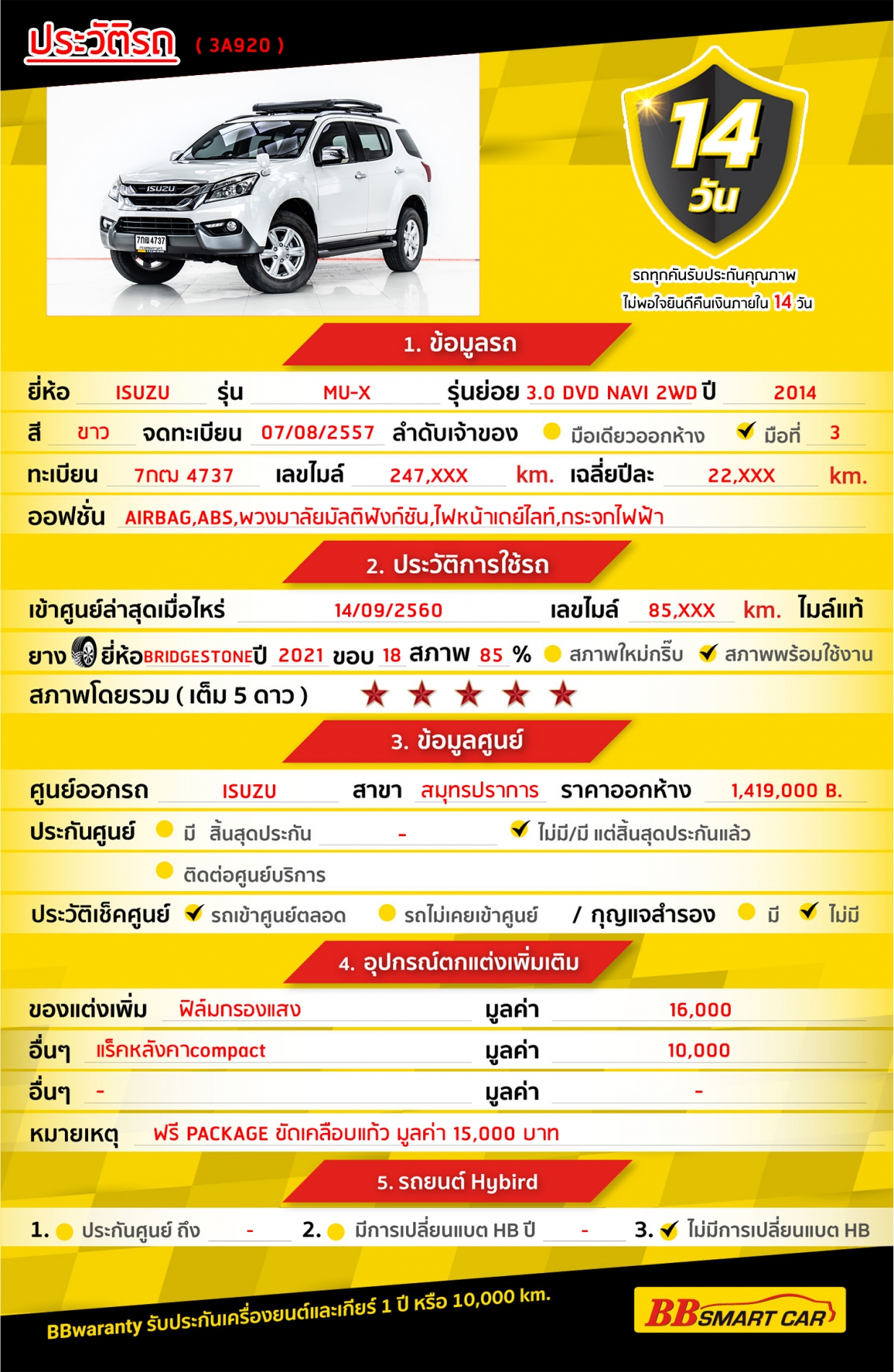 Model. : MU-X Grade. : 3.0 DVD NAVI