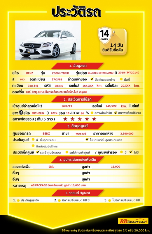 การรับประกันหลังการขาย BB Care Plus สูงสุด 2 ปี หรือ 20,000 km.