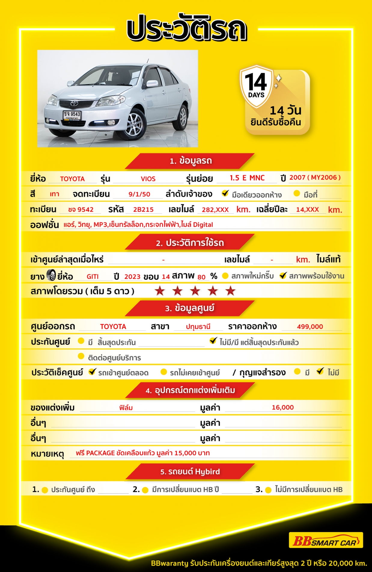 TOYOTA VIOS 1.5 E MT 2007 (ขายสดเท่านั้น) Line : @bbcar02