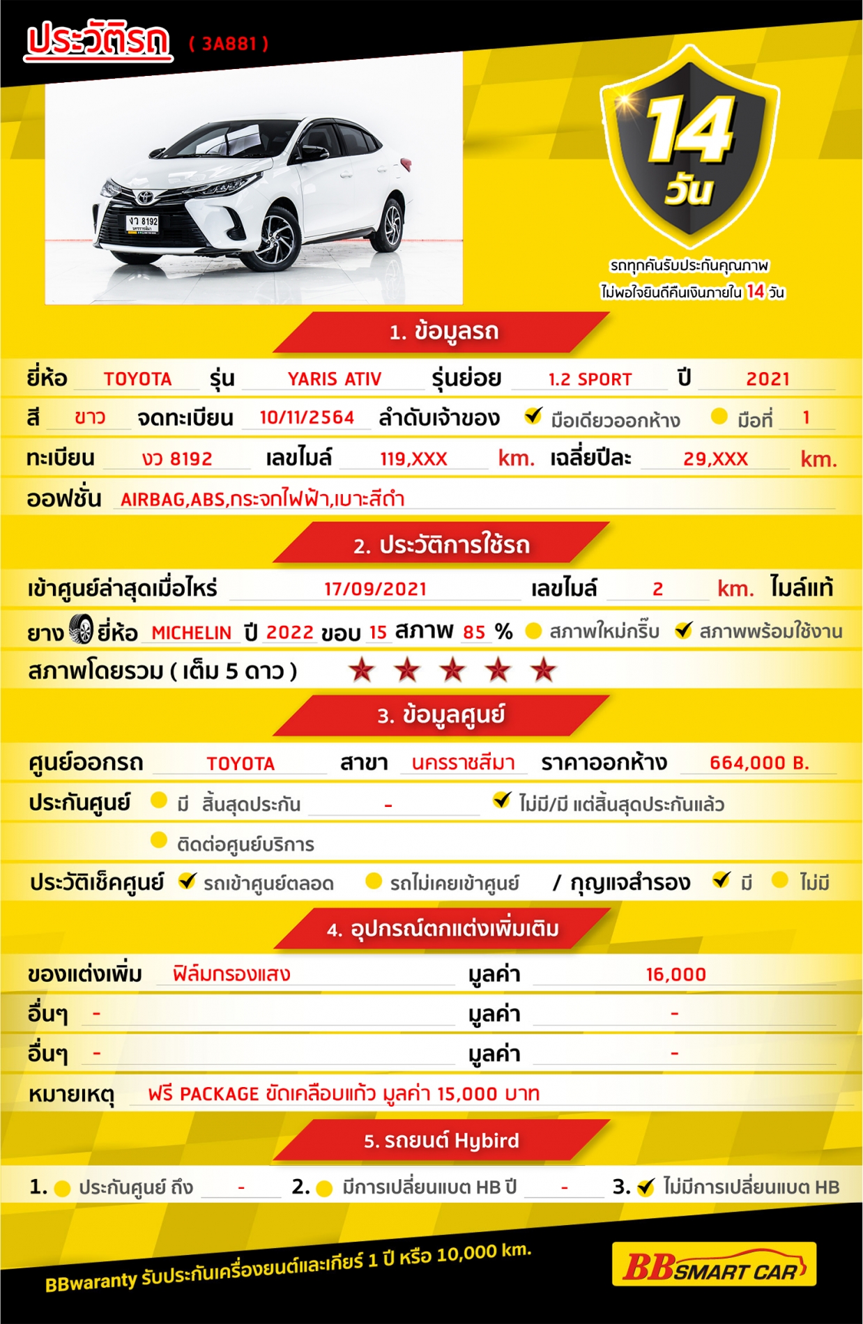 รหัสรถ 3A881 ราคา 319,000 บ. ผ่อนเพียง 6,010 บ.