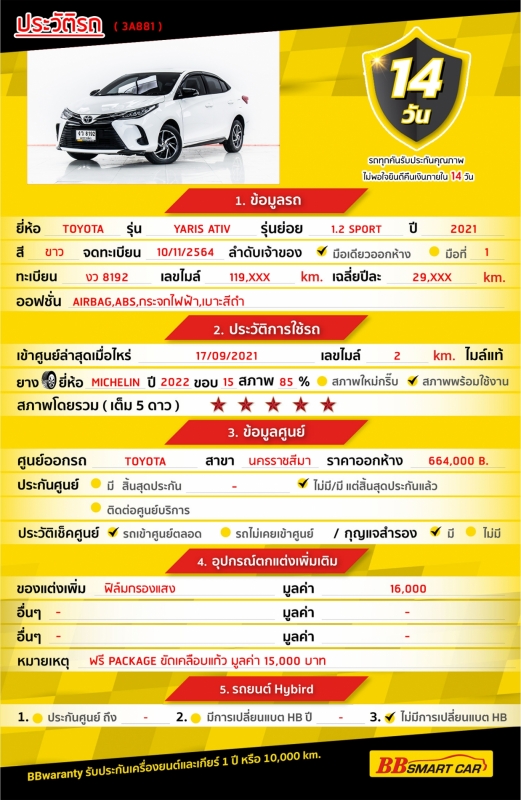 - BB Care Plus รับประกันหลังการขาย สูงสุด 2 ปี หรือ 20,000 km.