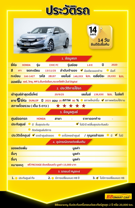BB Care Plus รับประกันหลังการขาย สูงสุด 2 ปี หรือ 20,000km.
