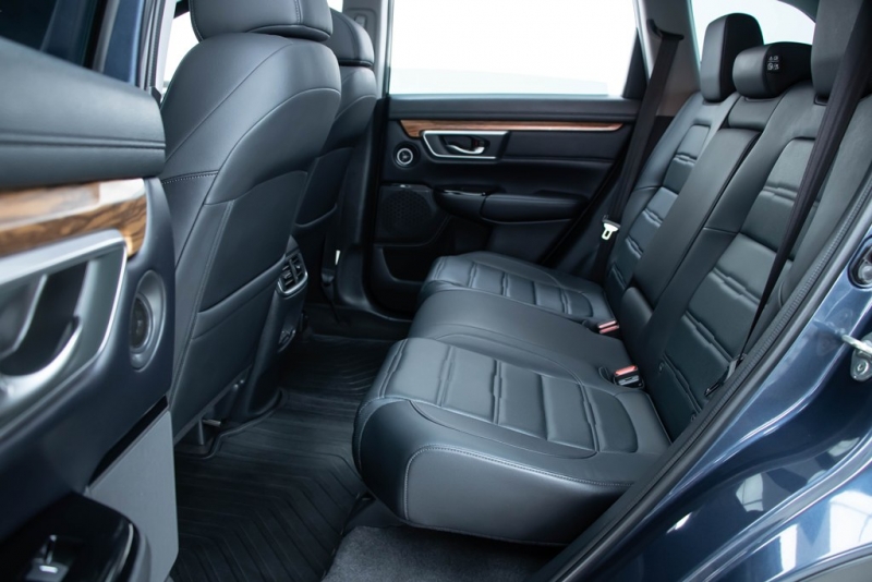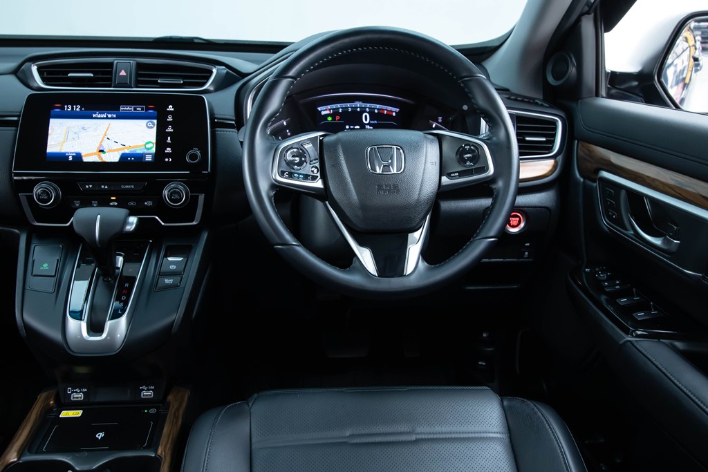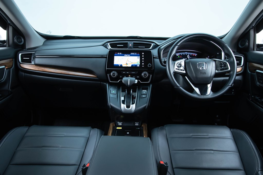 ภายนอก ดีไซน์ภายนอกของ Honda CRV มาในแนวรถ SUV สไตล์สปอร์ตพรีเมี่ยม โดดเด่นด้วยไฟหน้าแบบ LED สไตล์ฮอนด้า ไฟเลี้ยวแบบ LED Sequential พร้อมไฟตัดหมอก LED เอกลักษณ์ของ Honda พร้อมกระจังหน้าลวดลายรังผึ้ง และมีการตัดลายเส้นโครเมี่ยมที่บริเวณด้านหน้ารถ เสริมความหรูหราปนความสปอร์ตได้อย่างลงตัว ด้านข้างของตัวรถ พบกับสเกิร์ตข้างขนาดใหญ่ ใช้วัสดุที่แข็งแรงและล้างทำความสะอาดได้ง่าย ไม่ต้องกลัวเป็นรอยเหมือนการล้างกับสีตัวถังรถโดยตรง มีการตัดเส้นโครเมี่ยมเสริมความพรีเมี่ยมให้กับตัวรถที่ขอบสเกิร์ตและขอบกระจก ส่วนกระจอมองข้างด้านซ้ายจะติดตั้งกล้อง Honda LaneWatch มาให้ด้วย