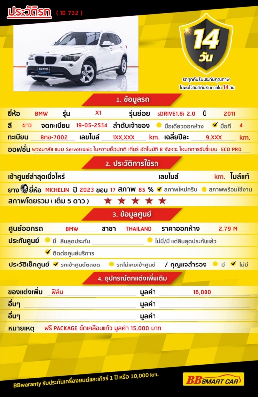 - BB Care Plus รับประกันหลังการขาย สูงสุด 2 ปี หรือ 20,000 km.