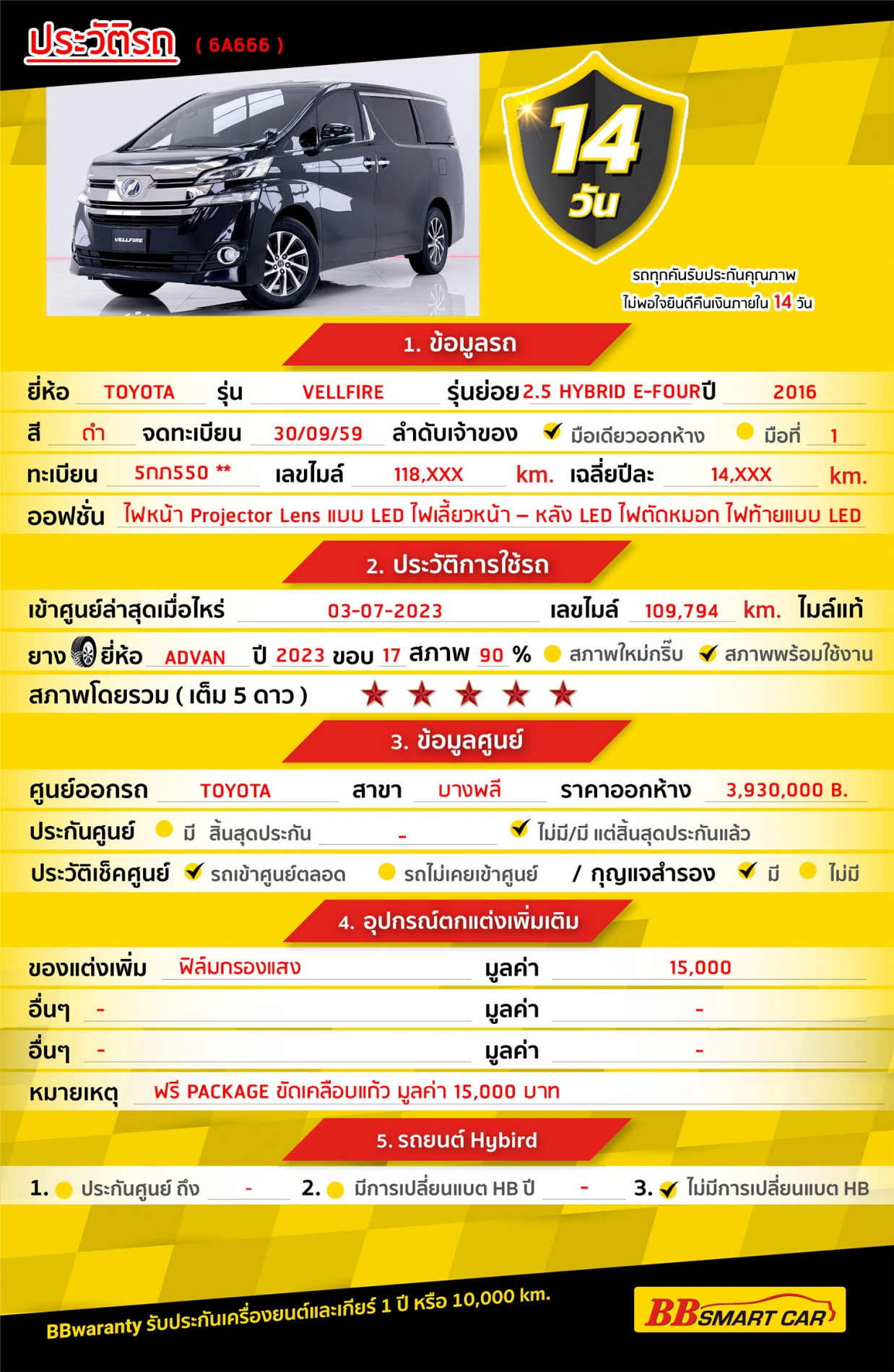 Model. : VELLFIRE Grade. : 2.5 HYBRID E-FOU