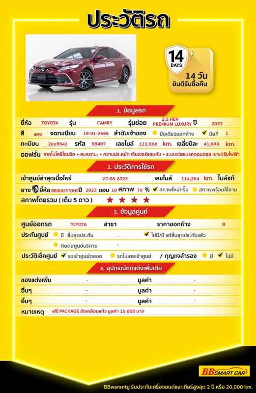 BB Care Plus รับประกันหลังการขาย สูงสุด 2 ปี หรือ 20,000 km..
