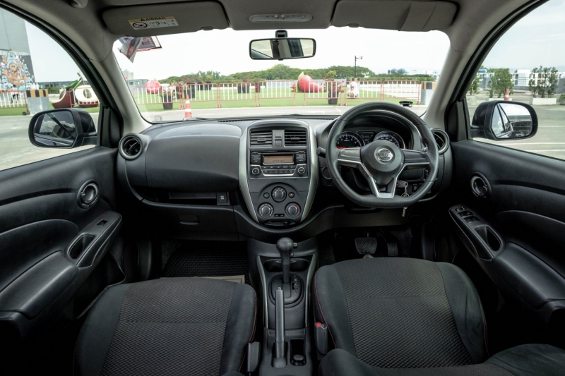 ✅ เบาะนั่งหุ้มด้วยผ้าสีดำ แบบสปอร์ต เดินตะเข็บด้ายสีแดง