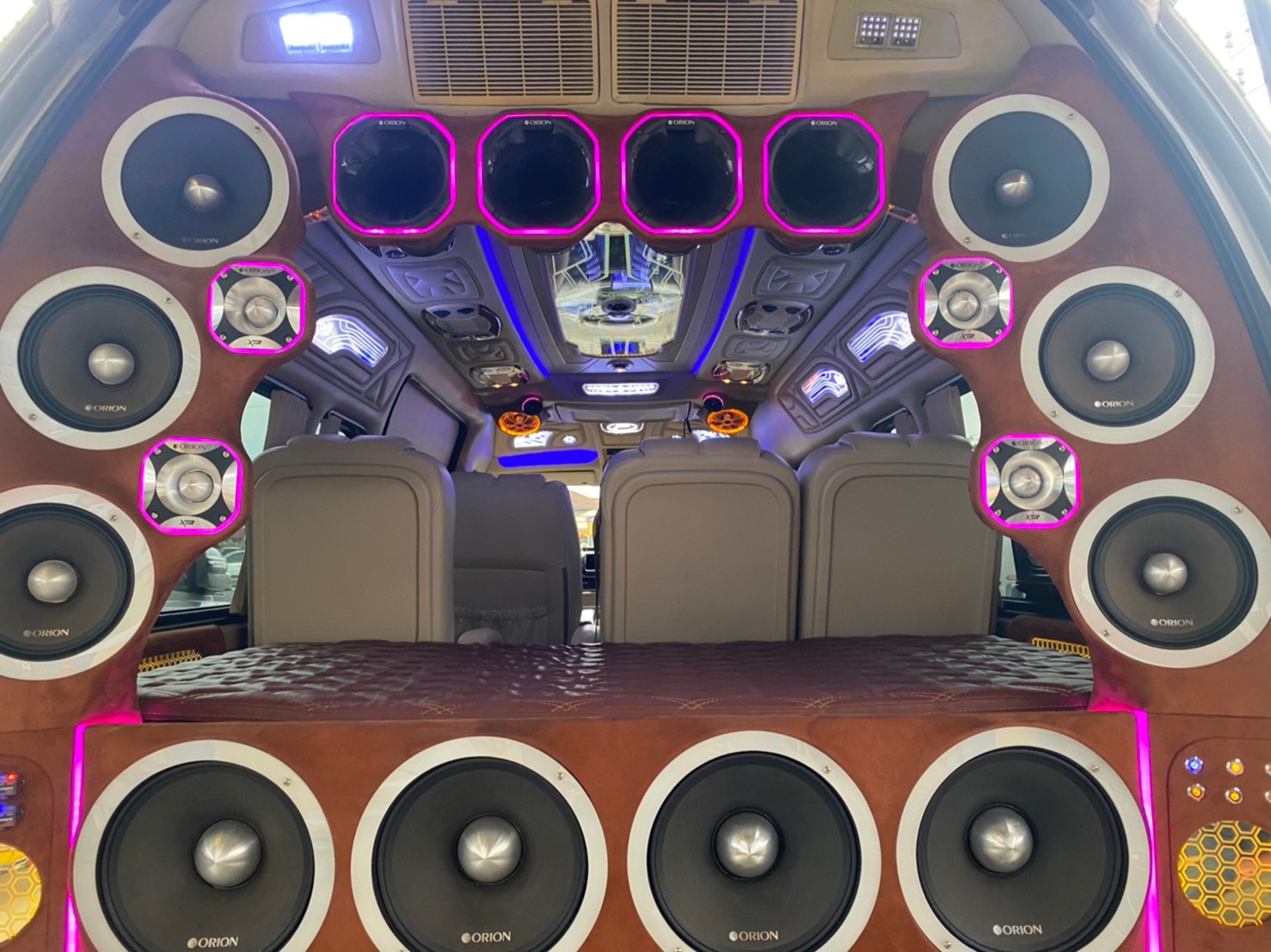 ด้านท้ายลำโพงไฟเต็มระบบ ลำโพงตู้ซับ 4 เครื่อง
