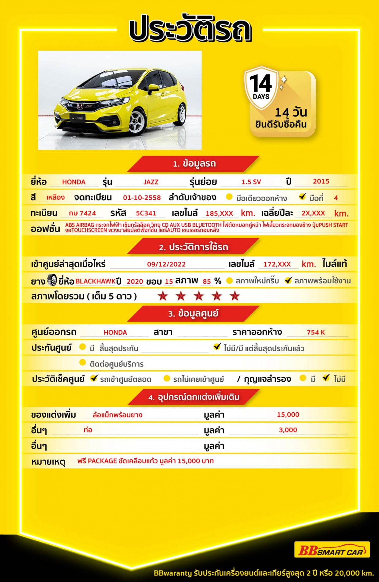BB Care Plus รับประกันหลังการขาย สูงสุด 2 ปี หรือ 20,000 km.