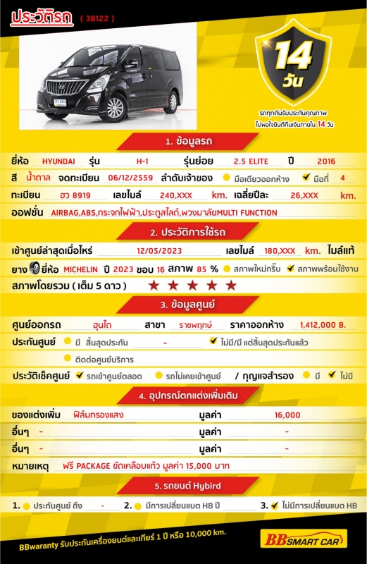- การรับประกันหลังการขาย BBwarranty ดูแลเครื่องยนต์และเกียร์ นาน 2 ปี หรือ 20,000 กิโลเมตร ด้วยช่างที่ผ่านการอบรมจากศูนย์ชั้นนำของประเทศ