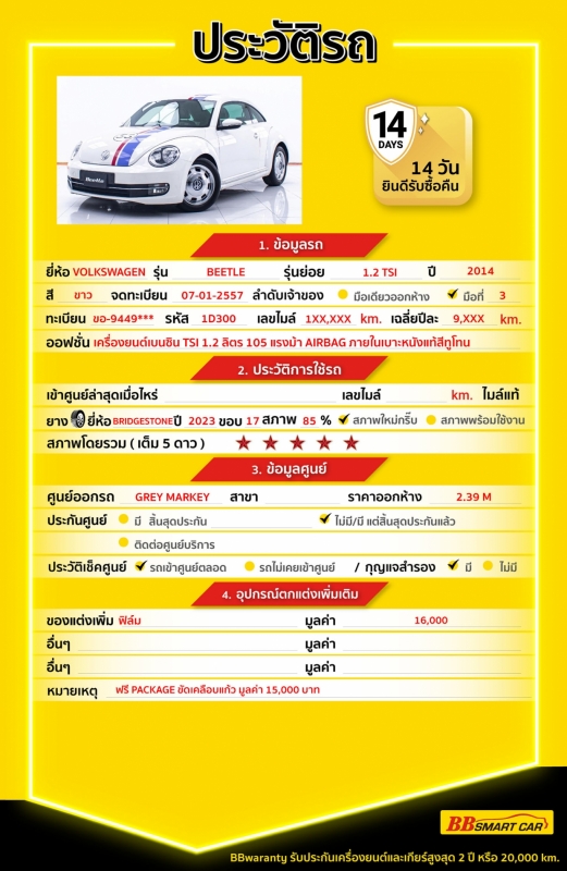 - BB Care Plus รับประกันหลังการขาย สูงสุด 2 ปี หรือ 20,000 km.