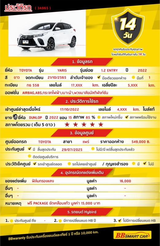 - BB Care Plus รับประกันหลังการขาย สูงสุด 2 ปี หรือ 20,000 km.