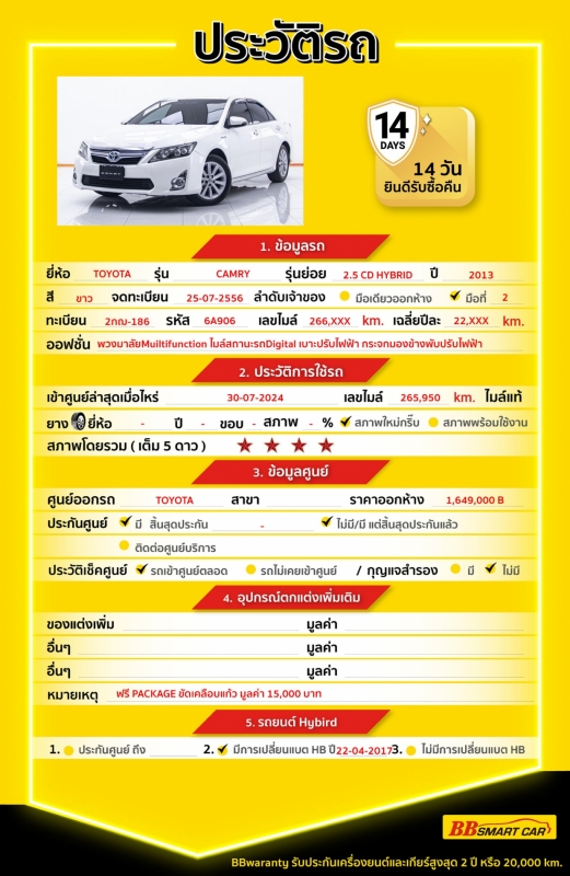 BB Care Plus รับประกันหลังการขาย สูงสุด 2 ปี หรือ 20,000 km..