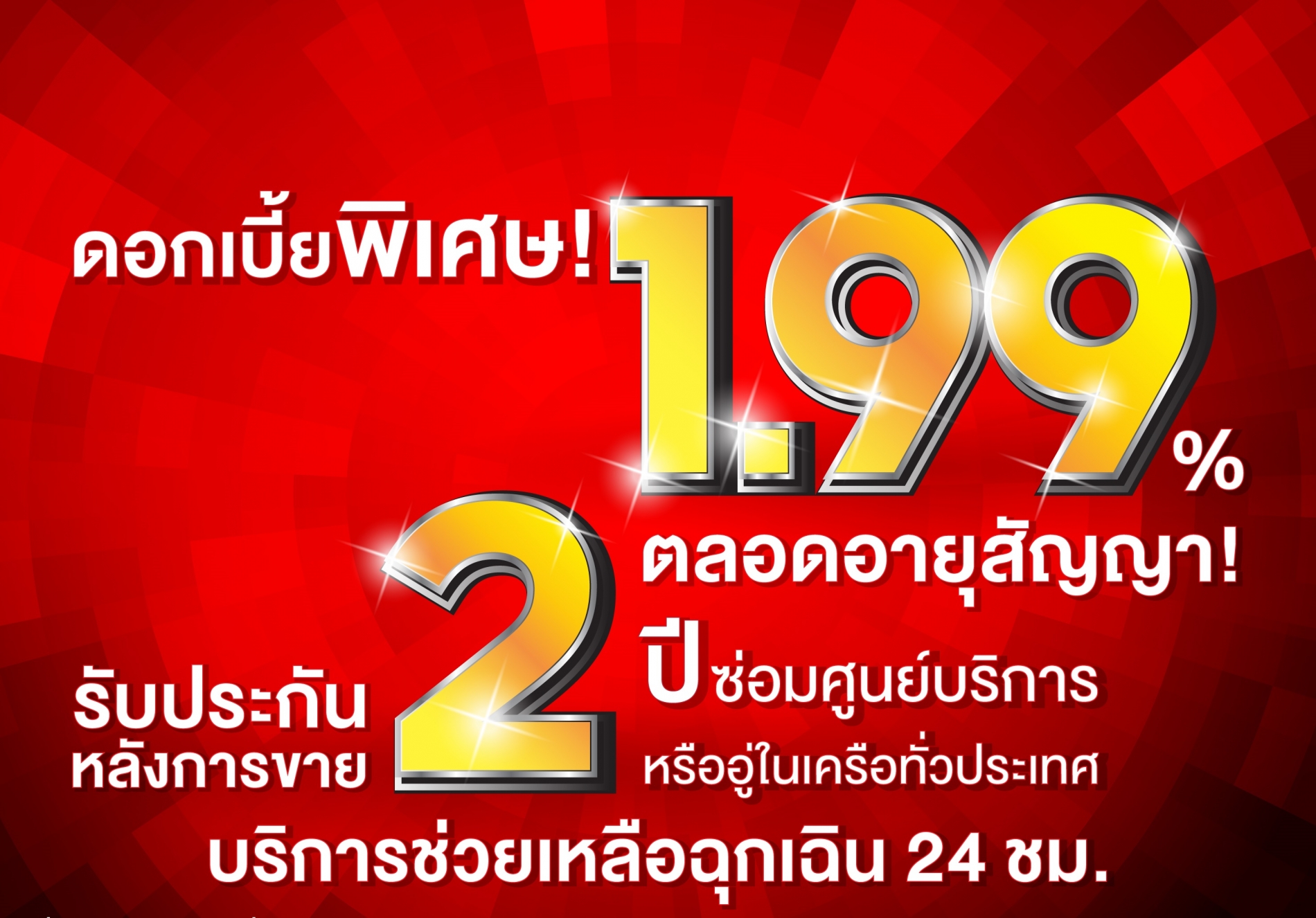 "ดอกเบี้ยเริ่มต้น 1.99% ตลอดอายุสัญญา พร้อมรับประกันหลังการขายนาน 2 ปี"
