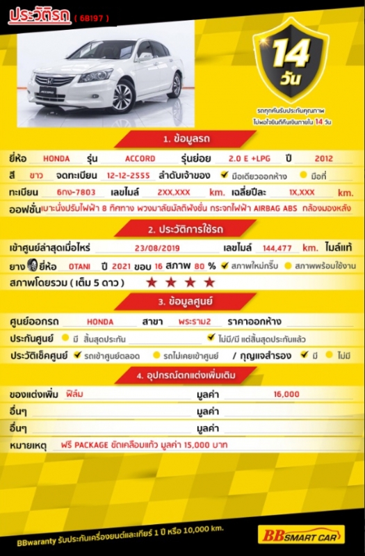 การรับประกันหลังการขาย BB Care Plus สูงสุด 2 ปี หรือ 20,000 km. ด้วยช่างที่ผ่านการอบรมจากศูนย์ชั้นนำของประเทศ