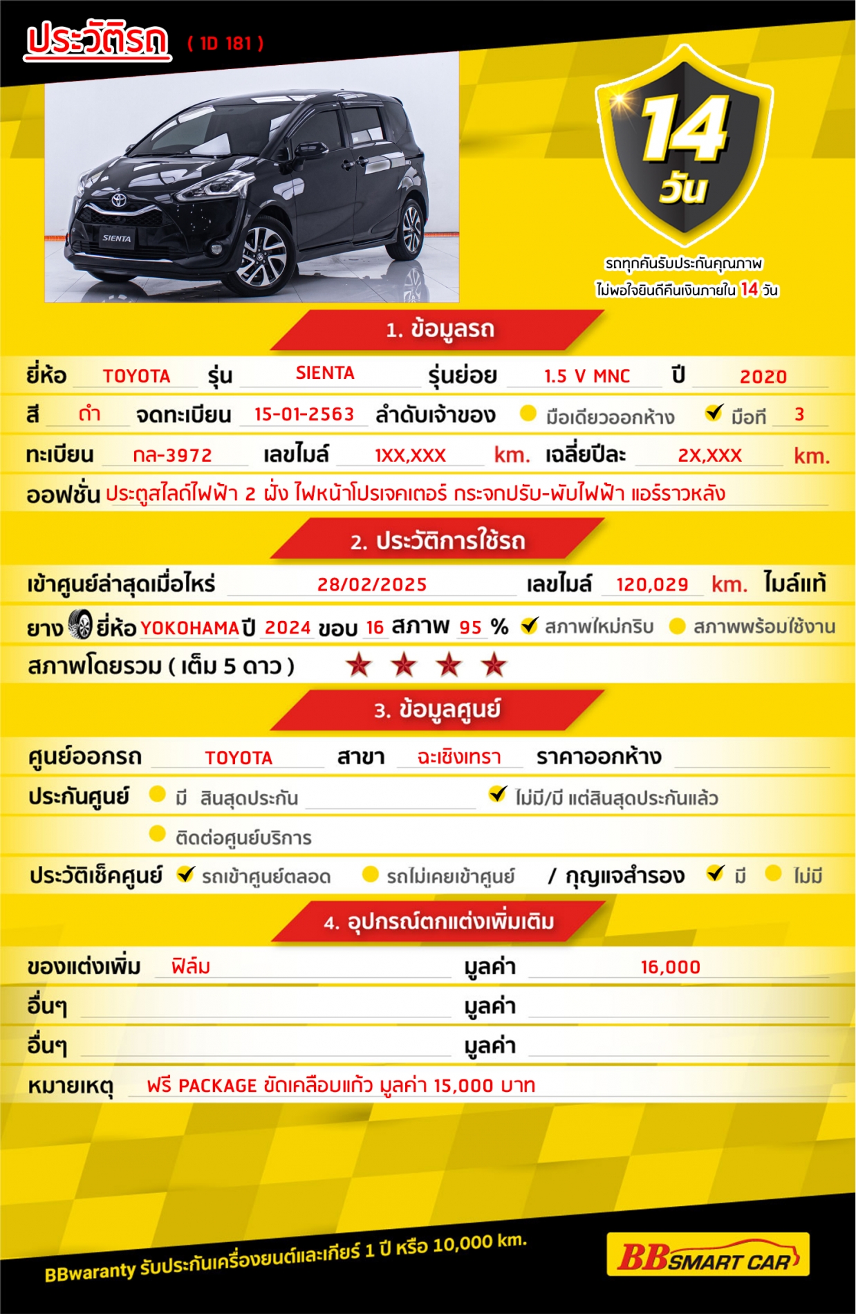 TOYOTA SIENTA 1.5 V MNC AT 2020